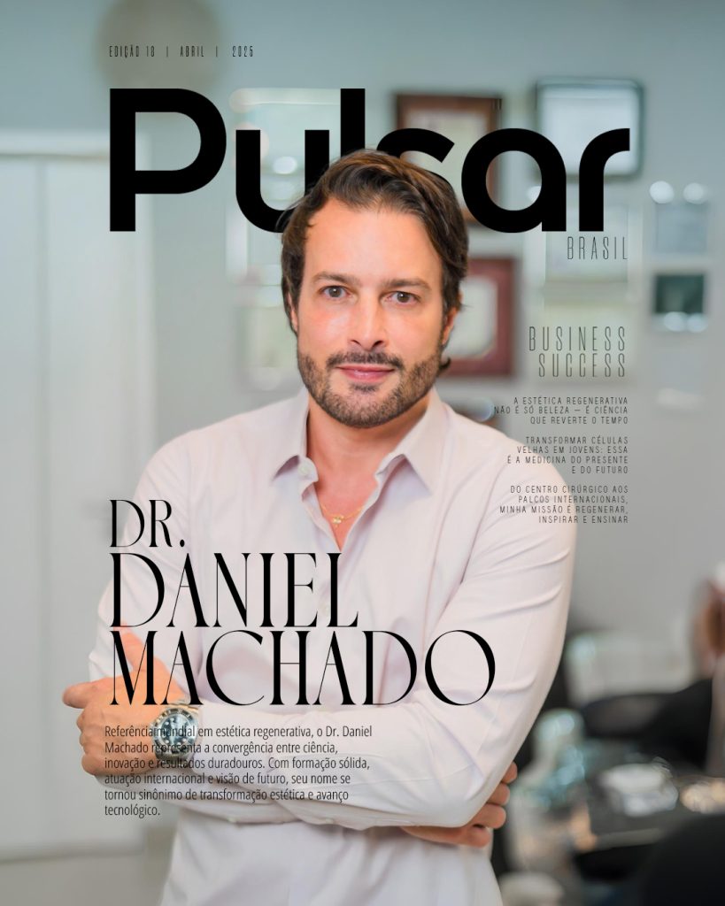 Com uma trajetória que une ciência, estética e visão de futuro, o Dr. Daniel Machado consolidou seu nome como um dos grandes expoentes da estética regenerativa no mundo. Com formação sólida e atuação internacional, ele se destaca por ultrapassar as fronteiras da beleza tradicional e trazer para o presente tratamentos que desafiam o tempo — literalmente. Entre cursos, congressos e sessões clínicas, Dr. Daniel compartilha com a Revista Pulsar os caminhos que o levaram ao reconhecimento global, sua rotina intensa, os avanços que mais acredita e até um sonho pessoal que ainda quer realizar.
